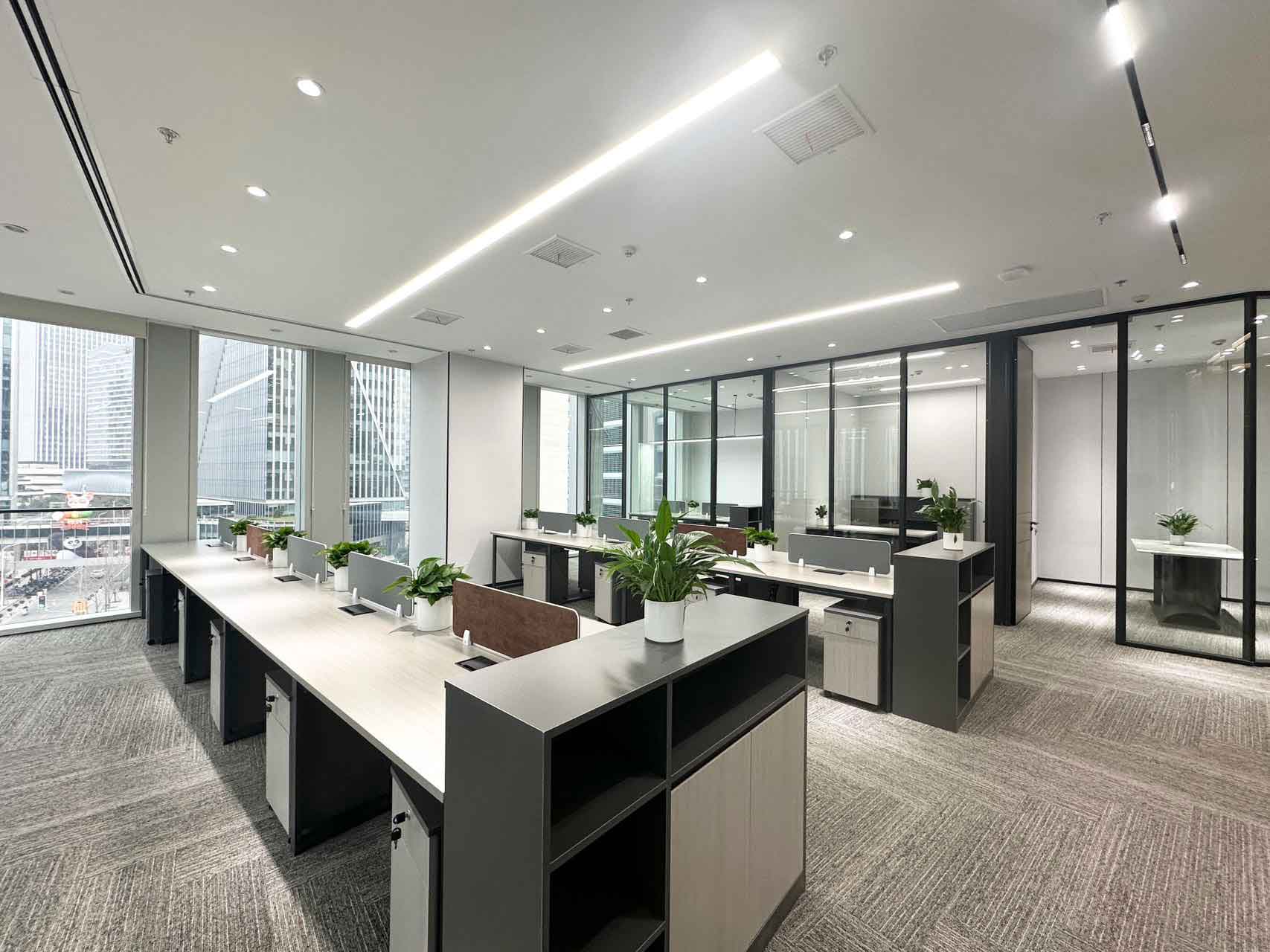 增值服务:包含全新品牌办公家具、前台管家服务、洽谈区、视频会议室、茶室、现磨咖啡、茶水、日常保洁&吸尘、可注册公司