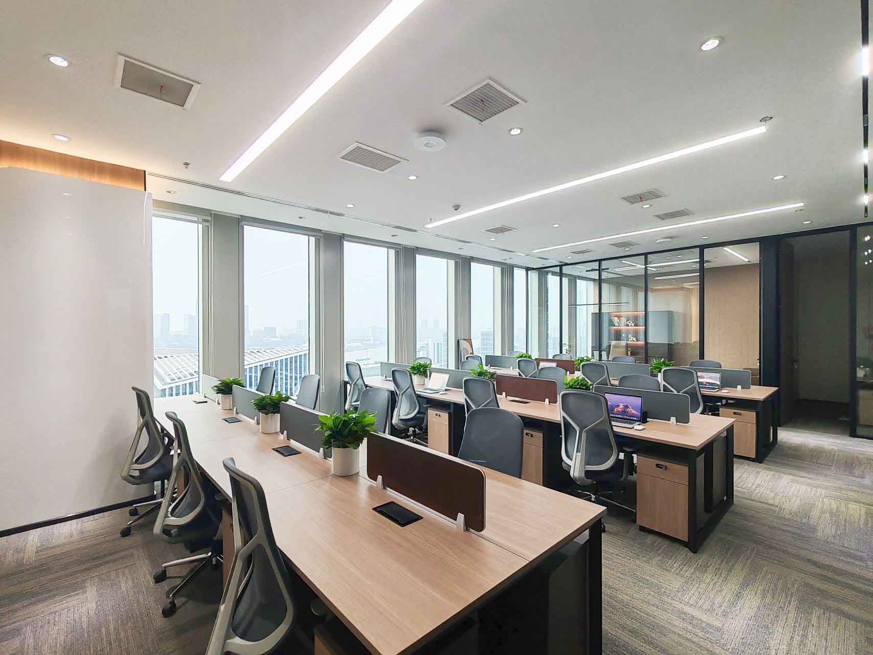【格局】老板间+1会议室+1经理室+23工位+洽谈区+财务室